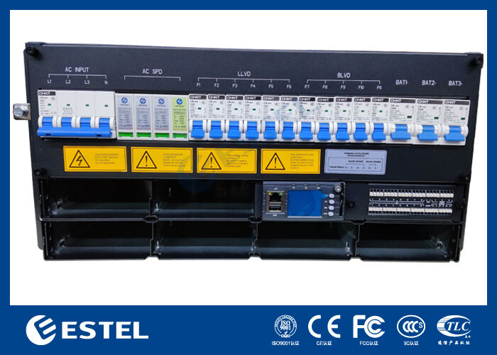 Die DC-Verteilerplatine ist mit 3*125A/1P-Batterieschutzschaltern ausgestattet und beinhaltet eine LLVD und eine BLVD Funktionalität für ein sicheres und flexibles Energiemanagement. Systemintelligenz wird durch einen dedizierten Controller bereitgestellt, der 4 analoge Sensoreingänge, 8 digitale Statuseingänge und 8 konfigurierbare potentialfreie Alarmrelais bietet. Fernüberwachung und -verwaltung werden über RS232/485- und SNMP-Schnittstellen ermöglicht, während ein integriertes LCD-Display die lokale Statusanzeige und -konfiguration ermöglicht.